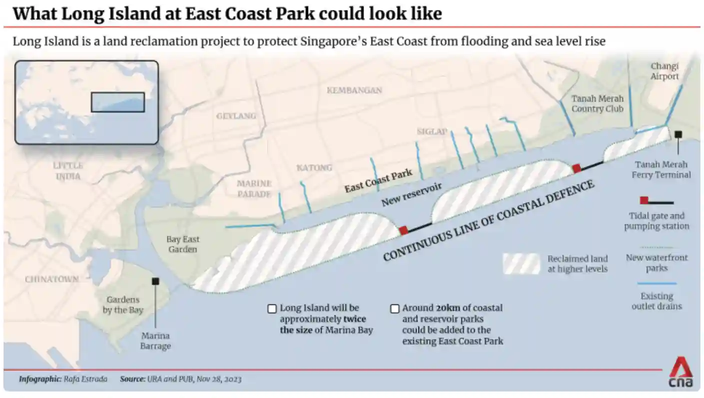 As Singapore plans the ambitious Long Island reclamation project off the East Coast, property analysts anticipate a mix of public and private properties, potentially accommodating up to 60,000 new homes. While no concrete plans are in place, the development could significantly transform the area, offering more opportunities for waterfront living and job creation.